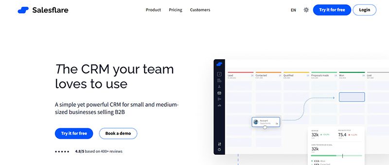 Another CRM tool ideal for startups, Salesflare automates many repetitive tasks to make handling your business easier and faster. It can help with your email applications, social media accounts, company calendars, and many other processes. It also provides you with crucial data such as sales funnel analysis, quota management, sales funnel analysis, and many others.