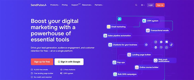 Excellent communication with your customers helps build stronger connections and loyalty. Whatever messaging channel you choose, SendPulse is a superb startup software. It includes lead generation tools as well as promotional channels such as email, SMS, social media, and messenger chatbots. It also offers a free CRM tool and many other features.